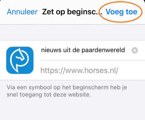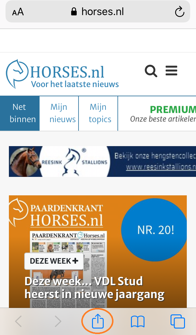 Wil jij van alle het hippische nieuws op de hoogte blijven en kun je niet wachten om de nieuwste artikelen te lezen? Zet een snelkoppeling van Horses.nl op je telefoon! Dit is een pictogram op je (begin)scherm om in één klik toegang te krijgen tot de website. Een eenvoudig stappenplan voor zowel iOS als Android.