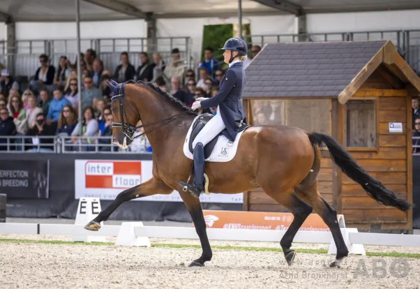 Op de eerste dag van de landenwedstrijd op het Europees kampioenschap U25 in Pilisjászfalu kwamen voor Nederland Daphne van Peperstraten met Greenpoint’s Cupido (v. Johnson) en Zoë Kuintjes met Cupido RS2 (v. Rhodium) in de ring. Beide amazones deden weinig voor elkaar onder en eindigden op de voorlopige zesde en zevende plaats. Na deze eerste dag staat het team van bondscoach Monique Peutz, net als de young riders, op de bronzen positie.