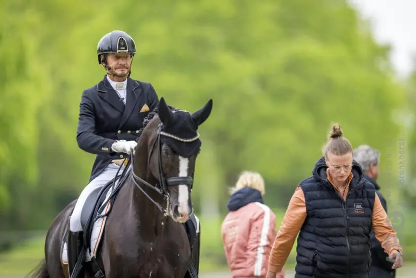 Edward Gal was geruime tijd niet op wedstrijd geweest. Gevraagd wordt of Vanessa Ruiter de wedstrijden gemist heeft of dat ze zo’n pauze wel eens lekker vond. “Dubbel. Ik miste het wel, zeker als Hans Peter en mijn collega groom Anna op pad gingen. Maar ik had in die tijd ook ineens wat meer tijd voor mezelf. Mijn moeder overleed in die periode ook en daarvoor kreeg ik toen alle tijd om dit verlies te verwerken. Ik leef voor de paarden, maar toen heb ik vanuit het Glock team alle tijd voor mezelf gehad.”