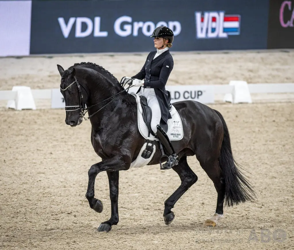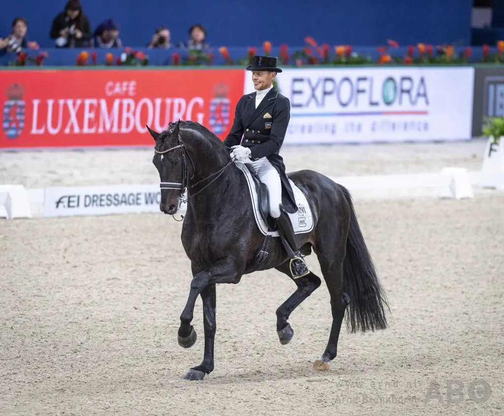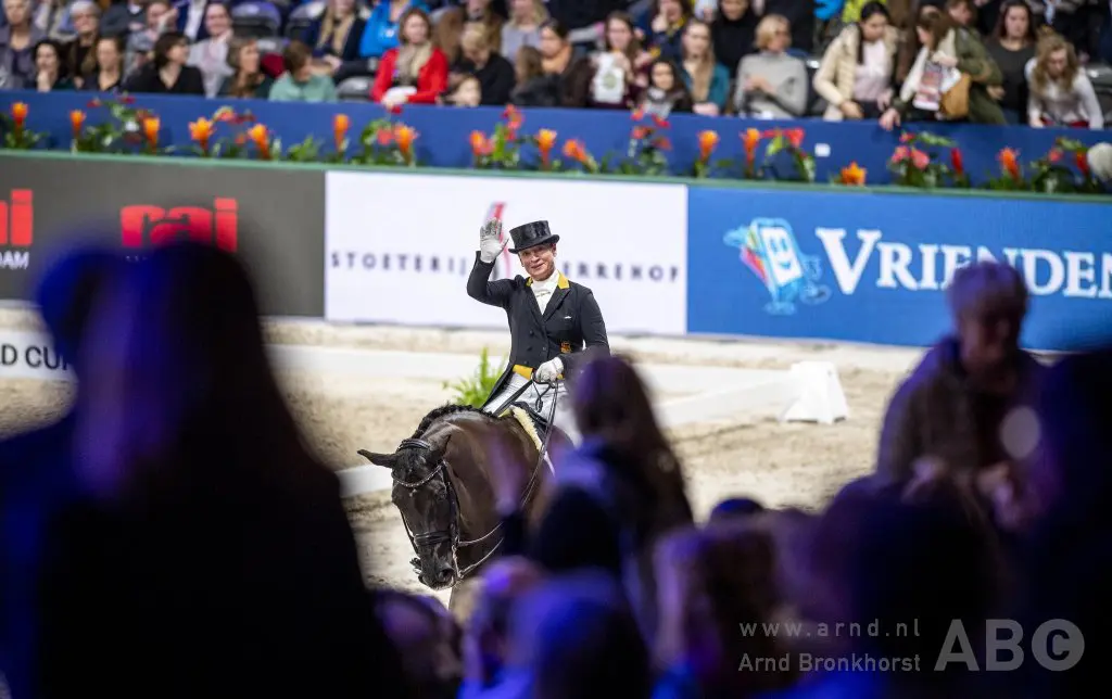 Isabell Werth won met Weihegold OLD, dankzij een score van 83,565%. Volgens Imke Schellekens benaderden de piaffe en passage de perfectie bij het Duitse duo. Foto: Arnd Bronkhorst / www.arnd.nl