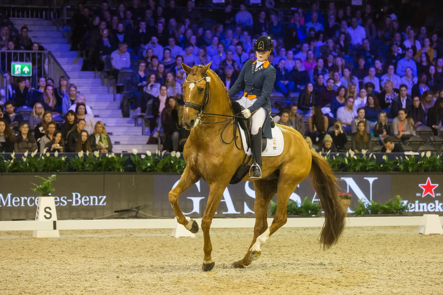 “Ik ben meer dan blij hoe ‘ie zich hier liet rijden”, vertelt Nieuwenhuis, die de afgelopen periode duidelijk haar huiswerk heeft gedaan met de sterke, maar ook nog wel eens lastig te controleren TC Athene. Dat deed ze vooral met werkgever Tim Coomans, maar ook met Hans Peter Minderhoud en Anky van Grunsven. “Hier in Amsterdam door dat donkere gangetje binnenrijden en dan opeens vol in het licht met al veel publiek op de tribunes voor de donderdag. Dat blijft toch wel heel mooi. Hij werd wel even heet, maar ik kon het toch goed blijven rijden.”