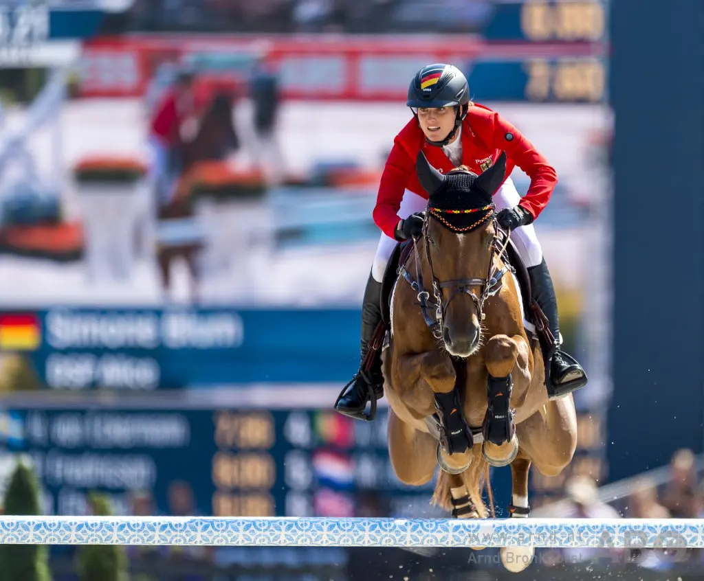 Simone Blum en DSP Alice waren foutloos in ronde A, maar kregen een balk in ronde B. Daarmee eindigde de Duitse wereldkampioene net naast het podium. Foto: Arnd Bronkhorst / www.arnd.nl