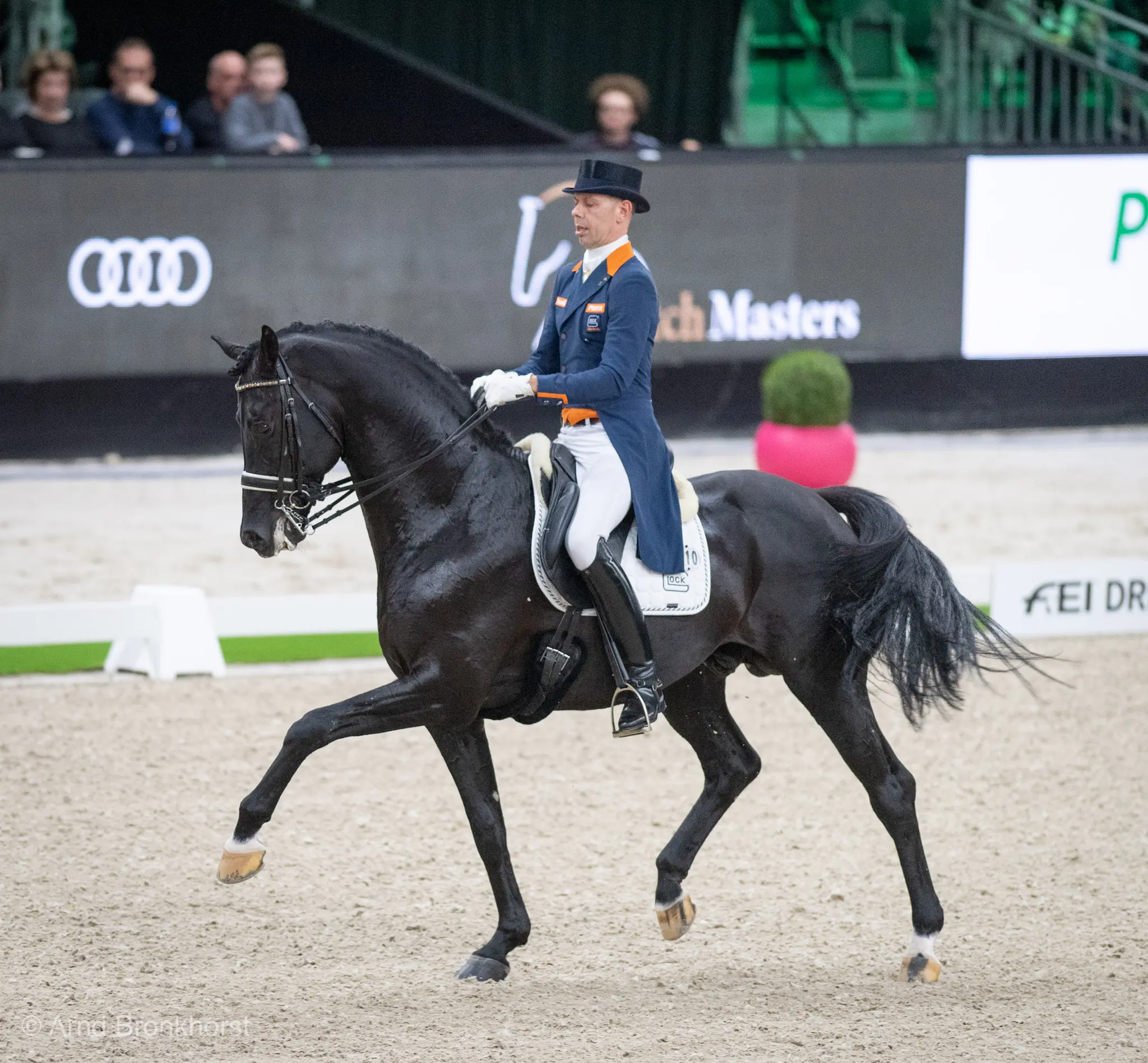 Hans Peter Minderhoud was vandaag twee keer de beste Nederlander. Met Zanardi pakte hij de derde plaats in de CDI3*-kür en met Glock’s Dream Boy (v. Vivaldi) was er een 4e plaats in de Wereldbekerkür (81,635%). Dream Boy liep minder vanzelfsprekend dan bijvoorbeeld eind vorig jaar in Mechelen, dat geeft Minderhoud ook toe. “In Mechelen liep hij beter ja. Hij had hier wat energie verloren op het voorterrein. Het losrijden hier is tussen het publiek en dan merk je toch dat een hengst als Dream Boy daar al iets teveel energie verspilt. Dat merkte ik vooral aan het begin en aan het einde van de proef. In het galopgedeelte pakte hij wel heel goed aan. Alsnog ben ik tevreden met hoe hij liep.”