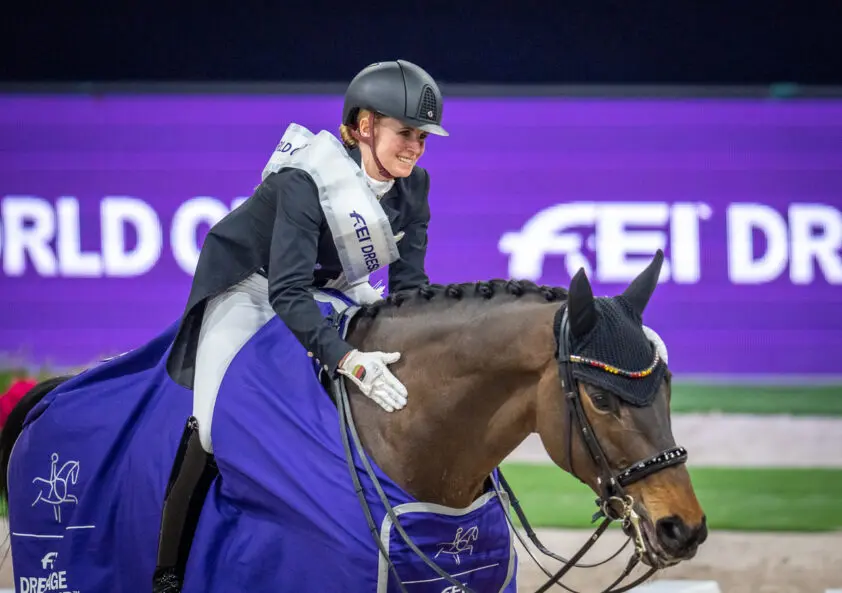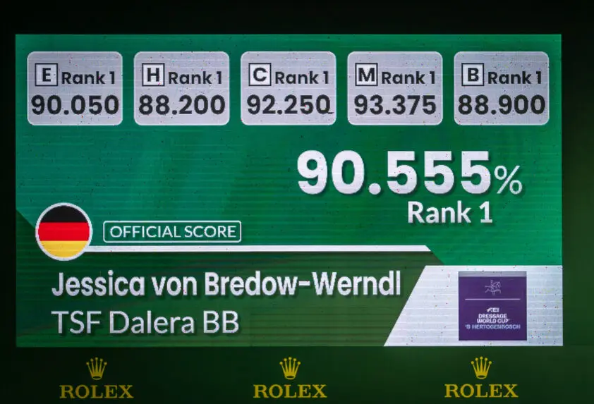 “Voor mijn gevoel was dit de beste kür ooit”, zei Jessica von Bredow-Werndl over haar kür met TSF Dalera BB. De hoogste score ooit werd het niet, maar wel weer een score boven de 90%. En naar die hoogste score ooit kan de Duitse straks in Leipzig in de Wereldbekerfinale een gooi gaan doen. Want het ziet er naar uit dat Dalera ook de volgende keer weer gewoon zo’n superkür gaat lopen. Zo stabiel ziet alles er uit.