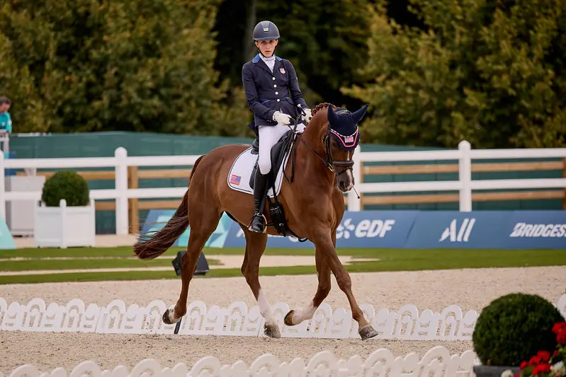 Demi Haerkens met EHL Daula II. Foto: FEI/Liz GreggZilver voor Anna-Lena Nieheus met Quimbaya 6. Foto: FEI/Liz GreggEen tevreden Kate Shoemaker met Vianne. Foto: FEI/Liz GreggPodium Grade IV (vlgnr. Anna-Lena Nieheus, Demi Haerkens, Kate Shoemaker. Foto: FEI/Liz GreggEen kus voor EHL Daula II. Foto: FEI/Liz Gregg