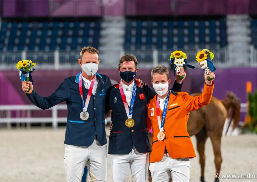 In een fantastische barrage pakte Maikel van der Vleuten met Beauville Z (v. Bustique) de individuele bronzen medaille. Het zilver ging naar Peder Fredricson met H&M All In (v. Kasmir van Schuttershof) en de allermooiste kleur medaille werd omgehangen bij Ben Maher voor zijn rit met springfenomeen Explosion W (v. Chacco-Blue). Bekijk hieronder een video van deze drie barrageritten.