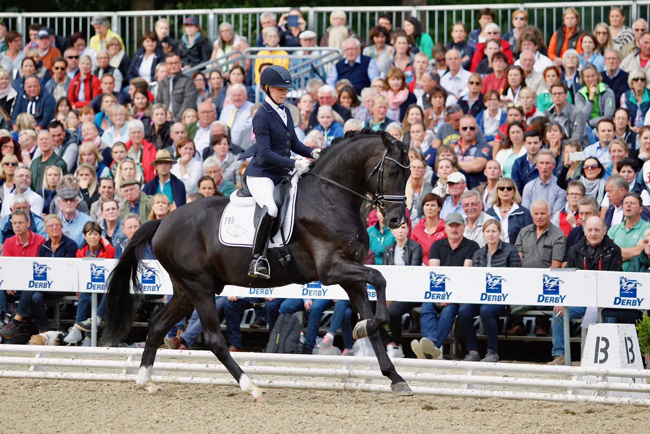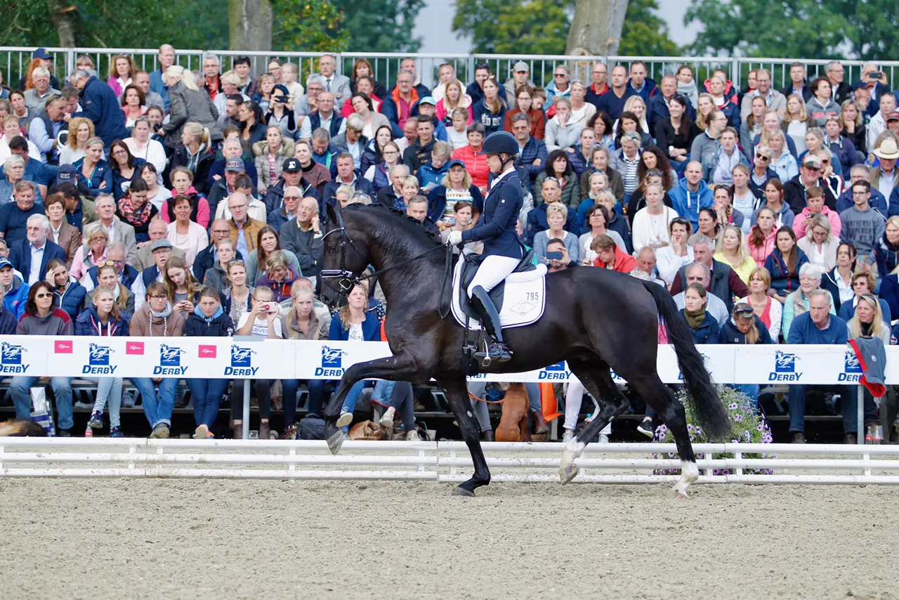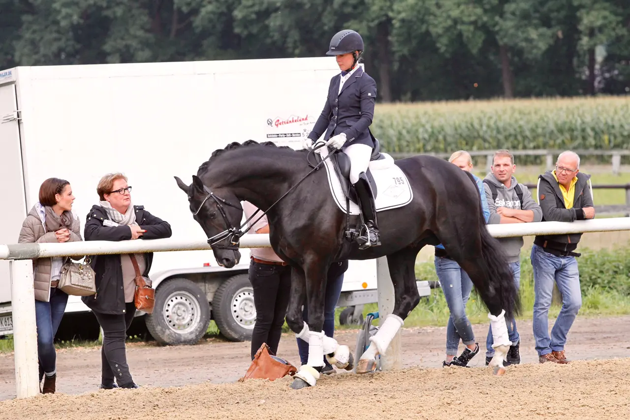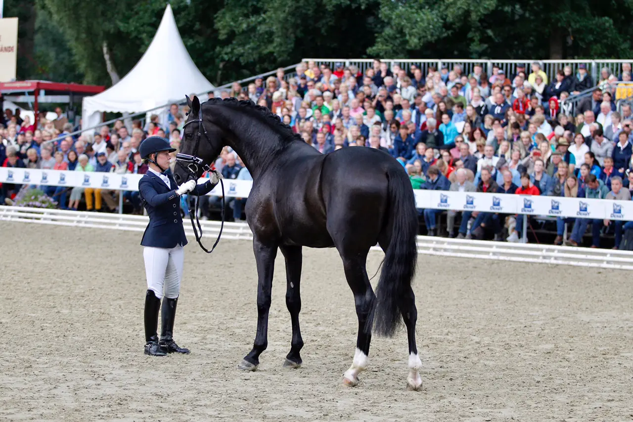 Zelden was het zo druk op de Reitpferdeplatz op de Bundeschampionate in Warendorf. Er was geen zitplaats meer vrij bij de rubriek voor driejarige hengsten waarin Secret verscheen. Paardenkrant-Horses.nl maakte een fotoserie en een video van een deel van de proef .