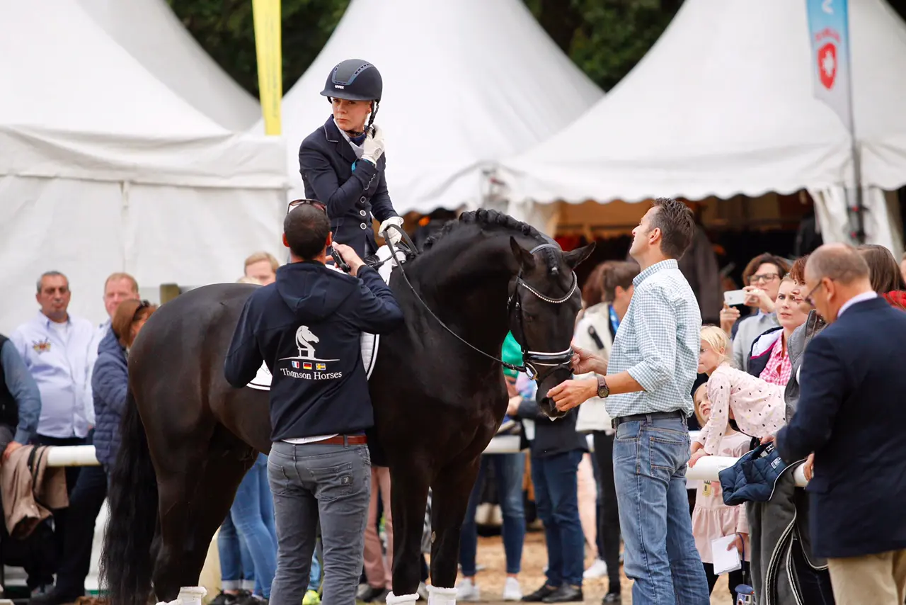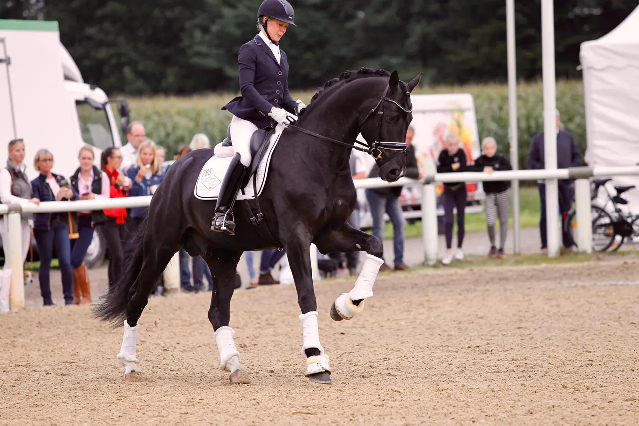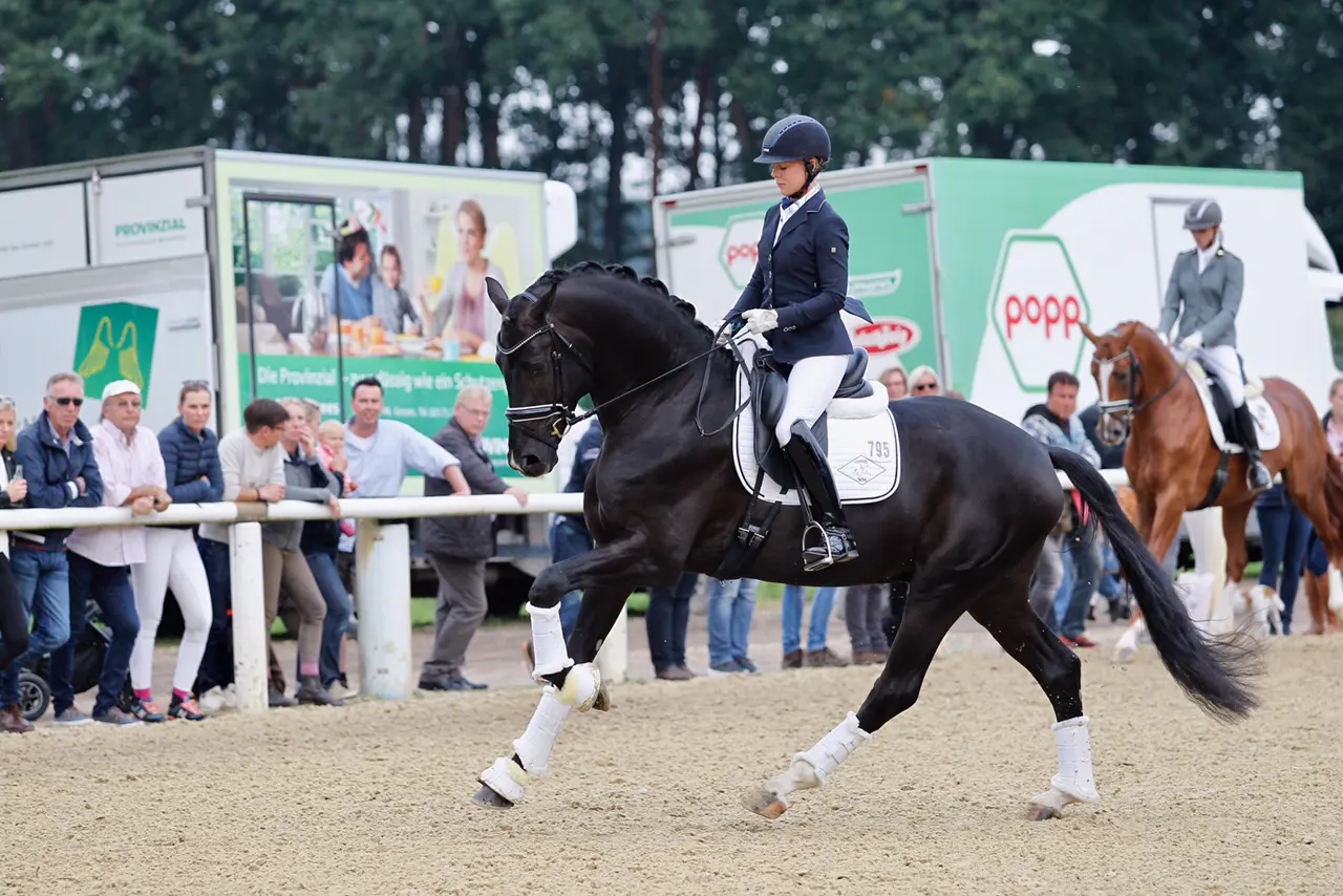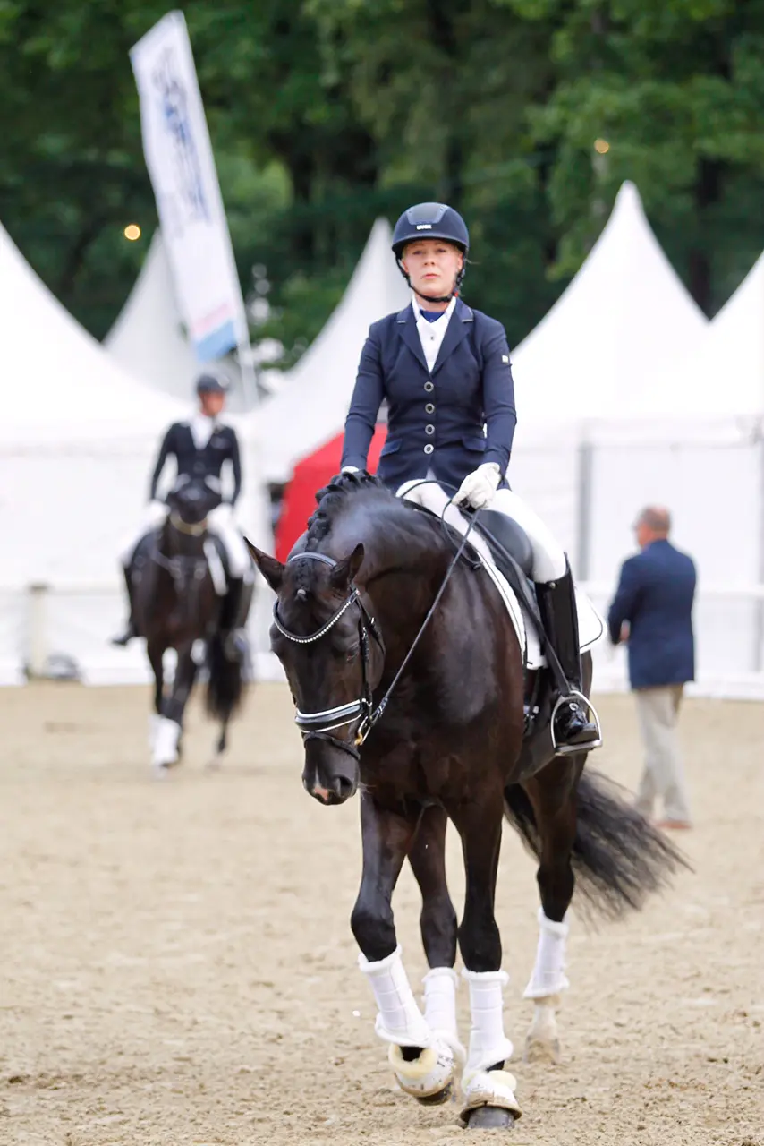 Zelden was het zo druk op de Reitpferdeplatz op de Bundeschampionate in Warendorf. Er was geen zitplaats meer vrij bij de rubriek voor driejarige hengsten waarin Secret verscheen. Paardenkrant-Horses.nl maakte een fotoserie en een video van een deel van de proef .