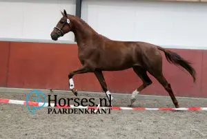 Kandyvrouwe, een dochter van Glock’s Toto JR uit elite sportmerrie Fergievrouwe (v. Bordeaux) f/g Marianne Hendriksen–de Rijk en H. de Rijke kreeg van ons 85 punten voor het stappen, het viel op met hoeveel ruimte ze rondstapte. De merrie is royaal ontwikkeld en heeft een sprekend hoofd. Ze beschikt over een goede schoftschouder partij en beweegt daarbij met balans en techniek. In galop changeerde ze makkelijk en had ze een goede buiging in de gewrichten van het achterbeen.’’ Ook Kalani SW (v. Grand Galaxy Win uit Cayenne elite D-OC (v. Florencio)) behaalde 80/80. De merrie is gefokt door S. Nijders en H.W. Westervelt uit Lichtenvoorde en is eigendom van Michelle Valkenburg van MV Horses uit Pijnacker. ‘’Kalani SW is een merrie die goed in het rechthoeksmodel staat, ze heeft veel uitstraling waarbij haar lange hals er goed op staat. Ze kreeg 85 punten voor haar draf waarbij ze veel beentechniek heeft en steeds goed bergop liep. In de galop mocht de merrie af en toe wat meer balans tonen. De hele verrichting had bijzonder veel souplesse,’’ sluit Bax zijn toelichting van de dag af.