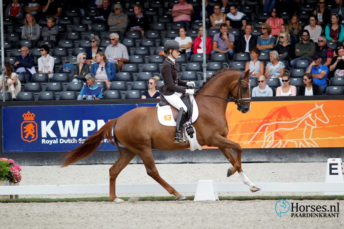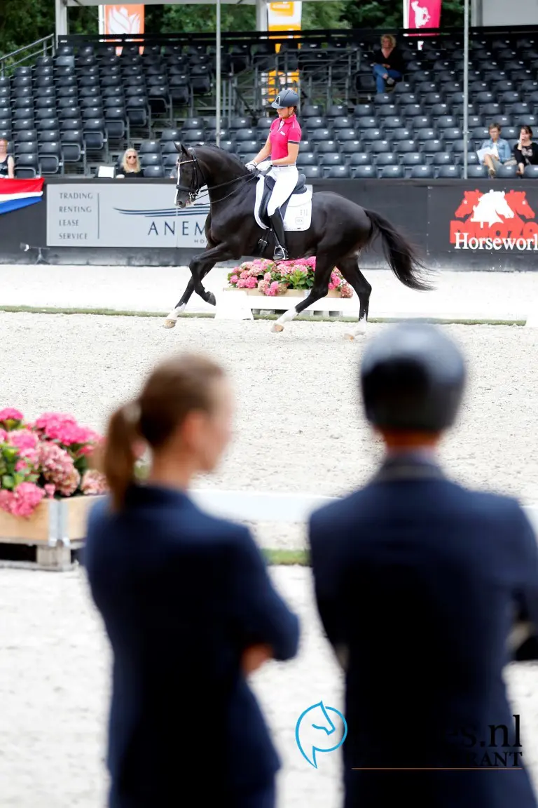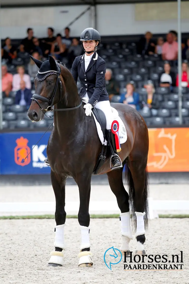 - Twee niet-KWPN goedgekeurde hengsten op 1 en 2 en een wel goedgekeurde Duitser op 3: For Ferrero (v. For Romance I) met Kim Koolen – Foto: Melanie Brevink-Van Dijk