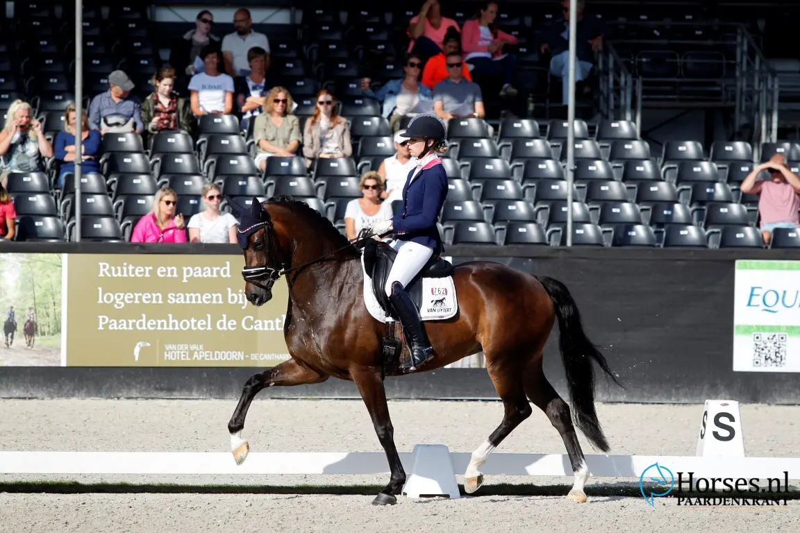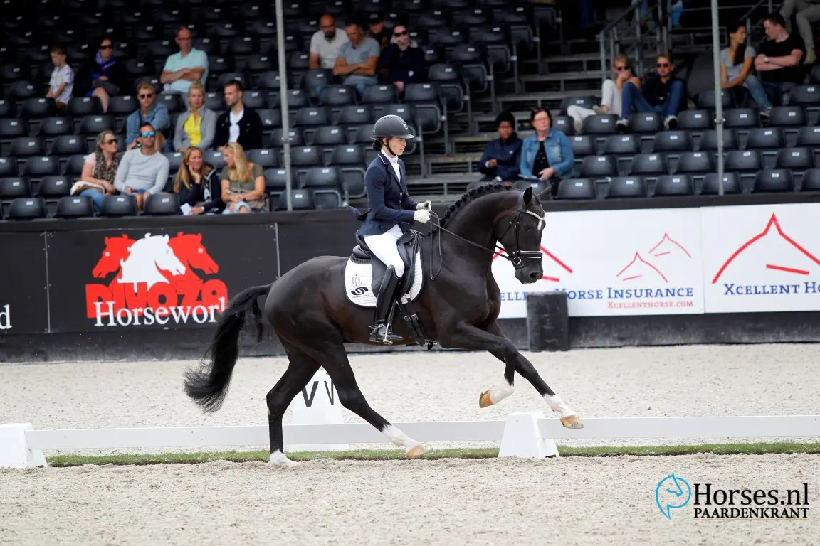 - Dé verrassing van de dag: Inferno (v. Everdale) met de 18-jarige Quinty Vossers. Een paard met drie goede gangen en een geweldige instelling. – Foto: Melanie Brevink-Van Dijk