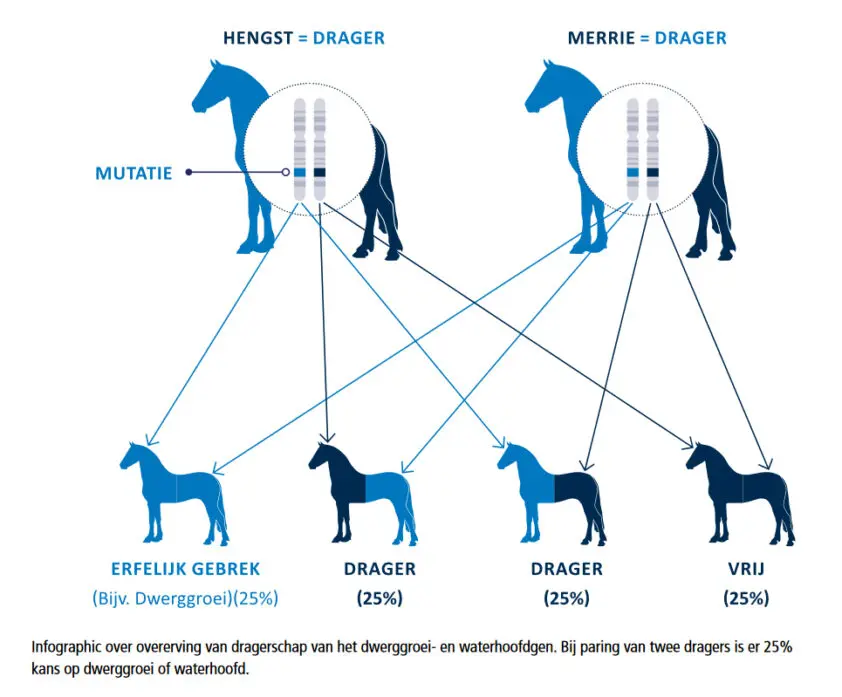 Toen de wetenschap zover was, werden met behulp van genetisch onderzoek aan het DNA van dwerg- en waterhoofdveulens, binnen enkele jaren de genetische markers voor deze aandoeningen gelokaliseerd. In beide gevallen bleek het om enkelvoudige, recessieve afwijkingen te gaan. Dat wil zeggen: alleen als een veulen van beide ouders het defecte gen krijgt, zal het ziek zijn.