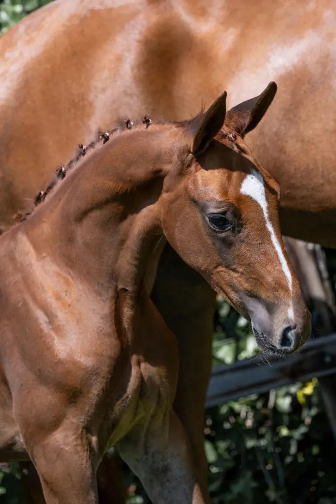 Dit merrieveulen komt uit een sterke stam. Haar grootmoeder Davos SC is een halfzus van drie 1.50/1.60m-paarden: Caligari (v.Cartani), Zoa Wodka (v.Cartani) en Locato S (v.Locato)