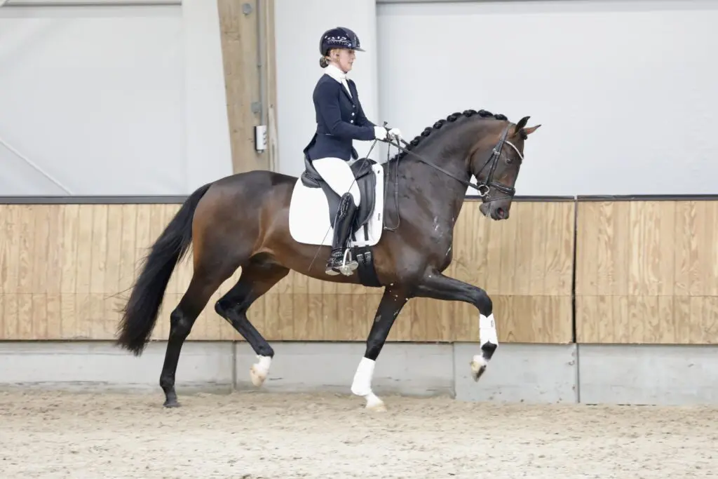 Twee hengsten uit de fokkerij van de Zuid-Hollandse Fokker van het Jaar Hans Bernoski vielen op bij de eerste zadelpresentatie. De voor 60.000 euro in de KWPN Select Sale geveilde cat.nr. 415 Stromae (Las Vegas x Sir Donnerhall I x Ferro) is een royale hengst die rondom kon overtuigen bij de zadelpresentatie. De hengst van C. van Heukelen uit Dirksland liet zich in alle drie de gangen goed zien onder Kim Noordijk.