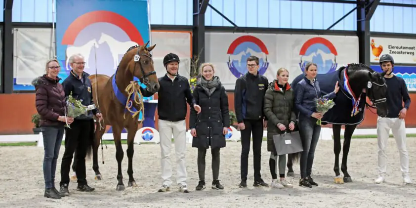 Bij de dressuurhengsten was er voor de familie Van Norel dubbel succes. Zij zijn fokker en eigenaar van zowel kampioen I am Rico Norel als de eerste reservekampioen Express Norel (Expression x Oscar). Als tweede reservekampioen mocht Le Rio Grande (Las Vegas x Bordeaux) van fokker Yardena Schillings en Louise Kortsee opstellen.