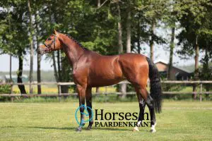 Masmine is een zeer royaal ontwikkelde, hoogbenige, aansprekende merrie die goed in het rechthoeksmodel staat en veel bloed uitstraalt.