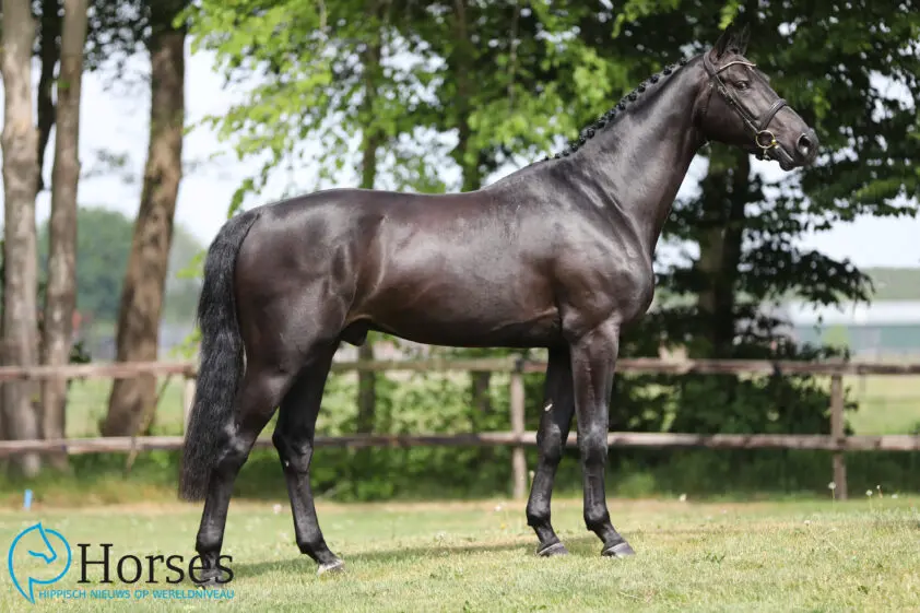 De merrie was tijdens de bezichtiging hoog drachtig. Geen galop en draf beoordeeld.