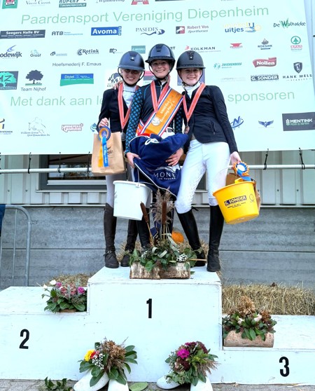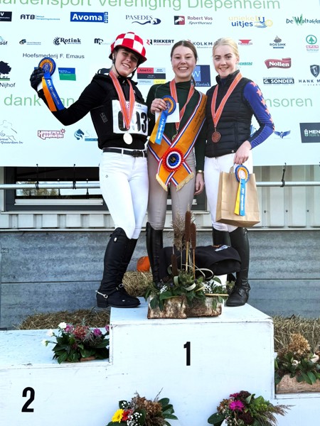 Kampioen Liz van Dijck: “Ik had dit zo niet verwacht! Dressuur ging super goed en we reden een foutloze cross en een foutloos springparcours maar het is pas ons tweede cross seizoen dus dit resultaat is echt fantastisch!”