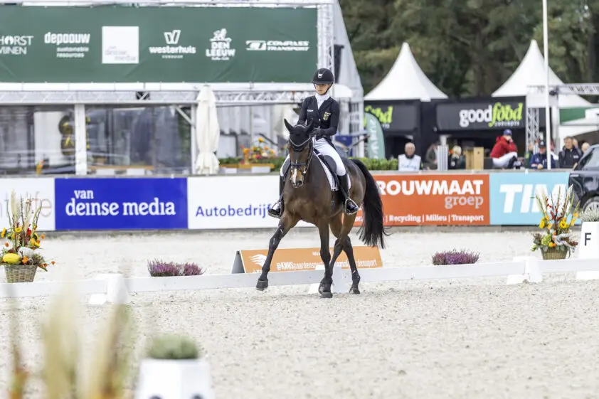 Op vrijdag rijden voor Nederland nog zeven individuele deelnemers de dressuurpiste binnen. Dan weten we ook wie er na de dressuur de leiding heeft in de strijd om het Nederlands Kampioenschap Eventing dat eveneens in Boekelo verreden wordt.