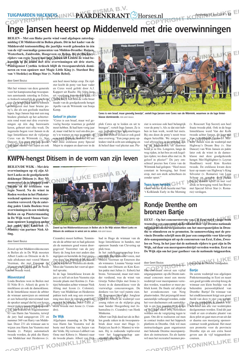 Plaatsgenoot Cynthia Ardesch blijft de tweespanrubriek domi-