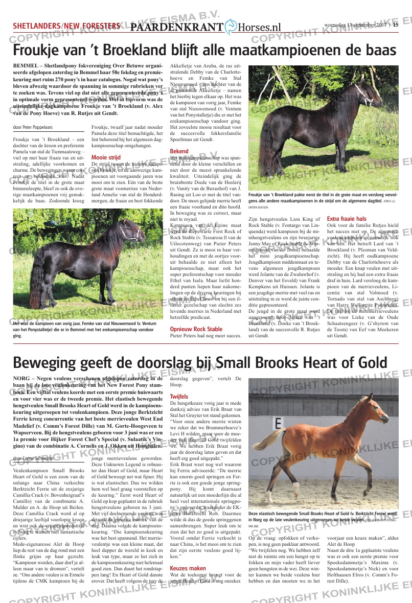 door Peter Poppelaars Froukje van ’t Broekland – een dochter van de kroon en preferente Pamela van stal de Tienmaatsweg – viel op met haar fraaie ras en uit- straling, adellijke voorkomen en charme. De bewegingen waren cor- rec...