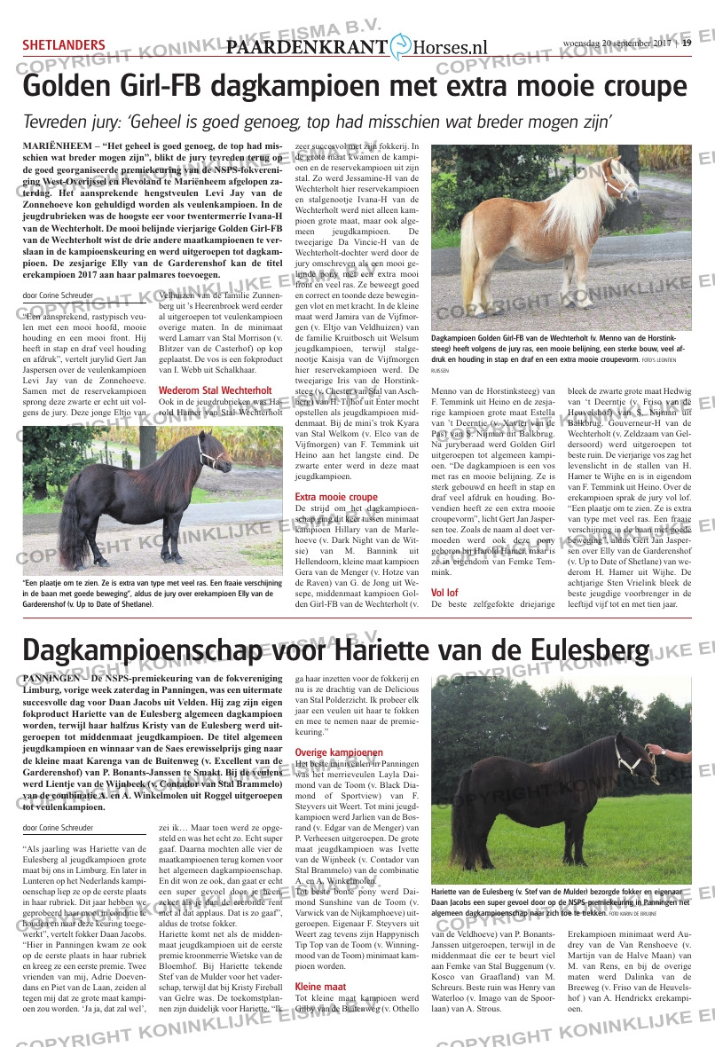 door Corine Schreuder “Een aansprekend, rastypisch veu- len met een mooi hoofd, mooie houding en een mooi front. Hij heeft in stap en draf veel houding en afdruk”, vertelt jurylid Gert Jan Jaspersen over de veulenkampioen Levi Ja...