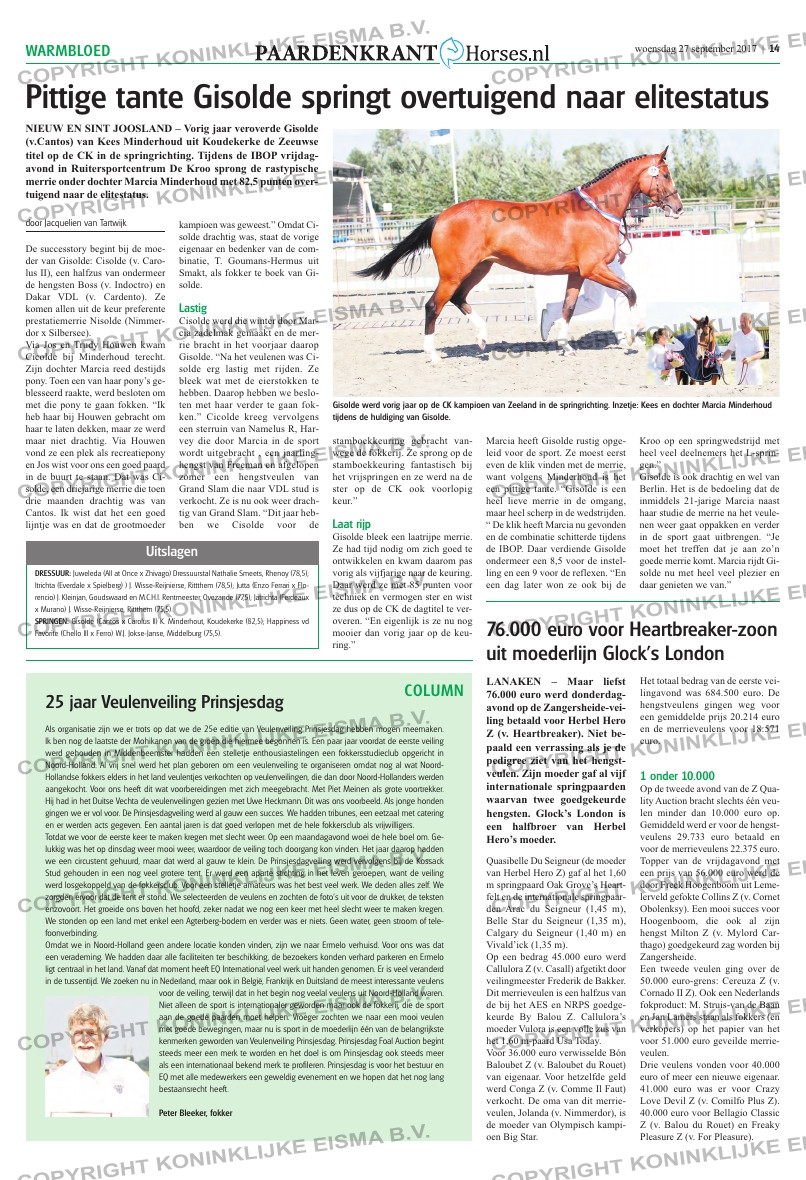woensdag 27 september 2017 | 14WARMBLOED