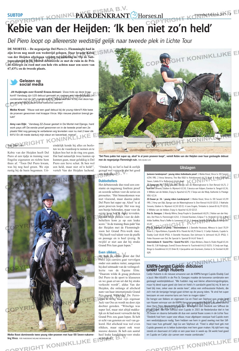 (YR); 2 Amy van Dijk, Django van de Wateringhoeve (v. Don Renzo) 64,50 (ZZ-Z); 3 Nathalie