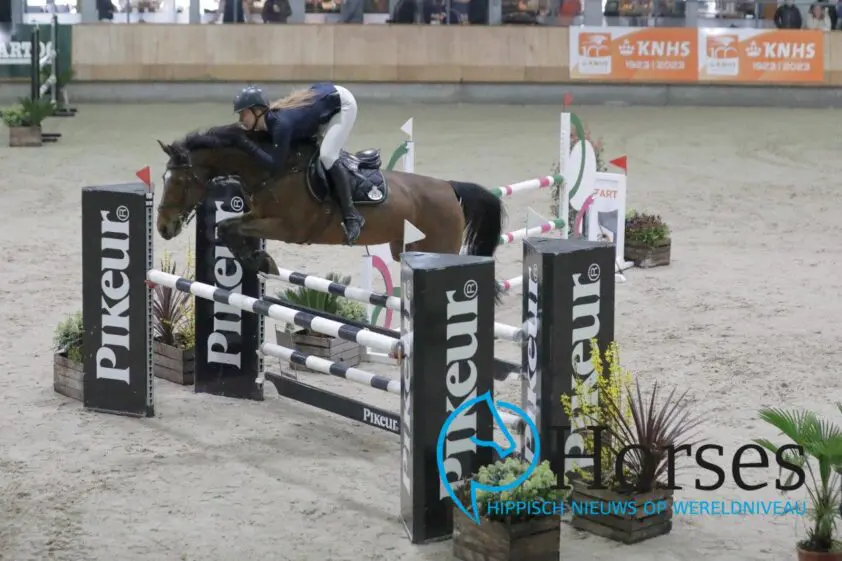 Slechts twee combinaties bleven foutloos in de tweede manche van het 1,20 m en konden zich zo plaatsen voor de allesbeslissende barrage. Kyra Snoeijer wist met haar pony Dongravin het hoofd koel te houden en reed de snelste foutloze tijd. Zij is de nieuwe KNHS Kampioen.