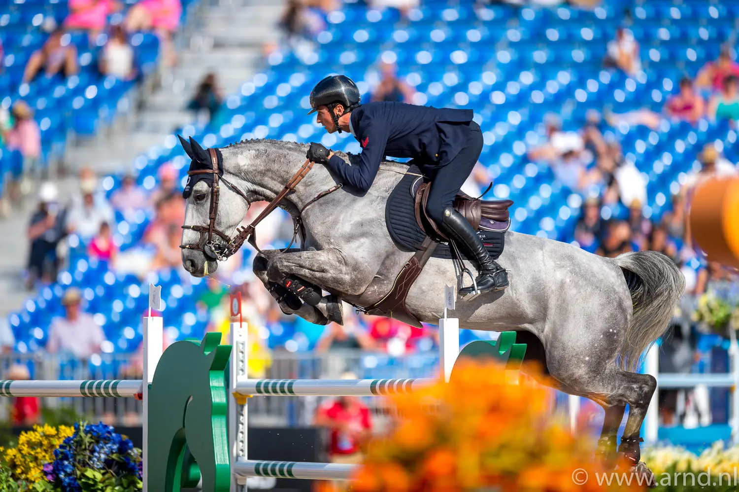 “Voor de tweede dag lag de moeilijkheidsgraad wel heel hoog”, aldus Harrie Smolders. “Het was een beetje een veldslag. Als dit de maat voor de tweede dag is, ben ik benieuwd wat de parcoursbouwer nog in petto heeft voor de rest van de week.” Foto: Arnd Bronkhorst / www.arnd.nl
