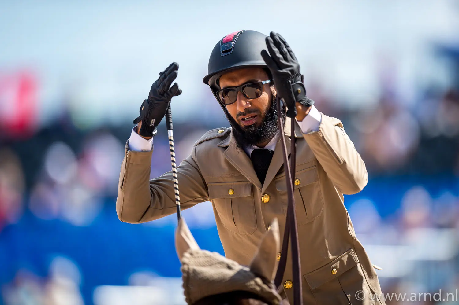 Khalid Hilal Al Khatri dankt Allah voor zijn goede ronde met Awal BDF, het paar kwam met vijf strafpunten over de finish. Foto: Arnd Bronkhorst / www.arnd.nl