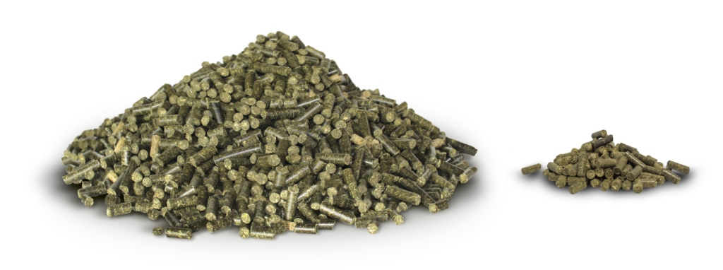 Bij krachtvoer is een grotere voergift dan bij een balancer nodig voor de dagelijkse vitaminen en mineralen.