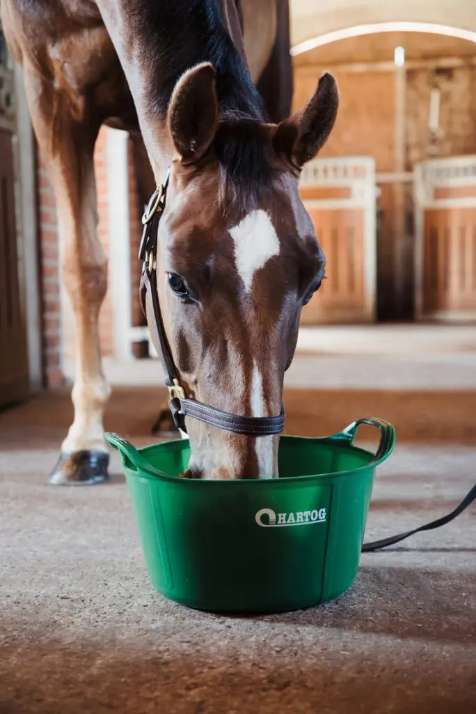 Als je een heel kleine hoeveelheid krachtvoer voert, bijvoorbeeld een handje omdat je paard het zo lekker vindt, is het wel verstandig om de volledige hoeveelheid van de balancer te voeren. Met zo’n kleine hoeveelheid krachtvoer hoef je niet bang te zijn voor overschotten. Daarnaast zijn er tegenwoordig ook balancers, zoals de Hartog Essential, op de markt die net zo graag gegeten worden als krachtvoer en dus niet meer verdund of verstopt hoeven te worden tussen andere voeders.