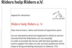 De Duitse trainers Axel Milkau en Hilmar Meyer (zelf aanwezig in Valencia) die een heel stel paarden in Valencia hebben … Meer lezen over ‘FEI-persberichten vol leugens’, Duitsers organiseren zelf hulp