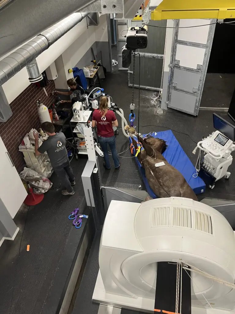 Voor delen van het paard die echt alleen liggend onderzocht kunnen worden, beschikt de kliniek over speciale in- en uitslaapkamers om de paarden veilig onder narcose te brengen en weer te laten opstaan. “Een liggend paard kan bijna in zijn geheel in de CT, waardoor ook het bekken en het SI-gewricht in beeld gebracht kan worden.”