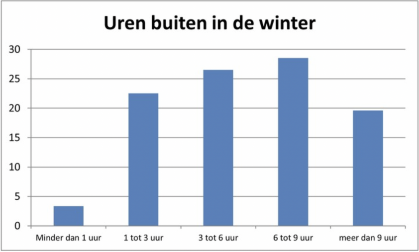 In de winter komt een kwart van de paarden minder dan drie uur per dag buiten. Er bestaat geen wettelijke norm voor vrije beweging. Volgens de gids goede praktijken van de sectorraad paarden moet een individueel gehuisvest paard minstens 2,5 uur per dag beweging hebben, de FNRS stelt als minimale norm in de winter van 0,5 uur vrije beweging en het KWPN heeft het over vier uur per dag. Uit onze enquête bleek het verschil tussen zomer en winter groot. Ruim driekwart van alle paardenhouders kan zijn of haar paarden in de zomer (veel) meer vrije beweging bieden. Het verschil is met name groot voor de paarden die in de wintermaanden één tot zes uur per dag buiten komen. Van deze dieren komt zo’n 85% in de zomer (veel) meer buiten. Paarden die in de winter al meer dan negen uur per dag buiten staan, krijgen in de zomer in 39% van de gevallen nóg meer vrije beweging. Opvallend is dat de paarden die in de winter minder dan één uur buiten komen er in de zomer vaak maar een paar uur bij krijgen en ook dan het grootste deel van de dag op stal doorbrengen. Naast vrije beweging worden de paarden van onze lezers ook vaak getraind. Ongeveer 37% van de respondenten zegt zijn of haar paard(en) meer dan één uur training of stapmolenarbeid per dag te geven.